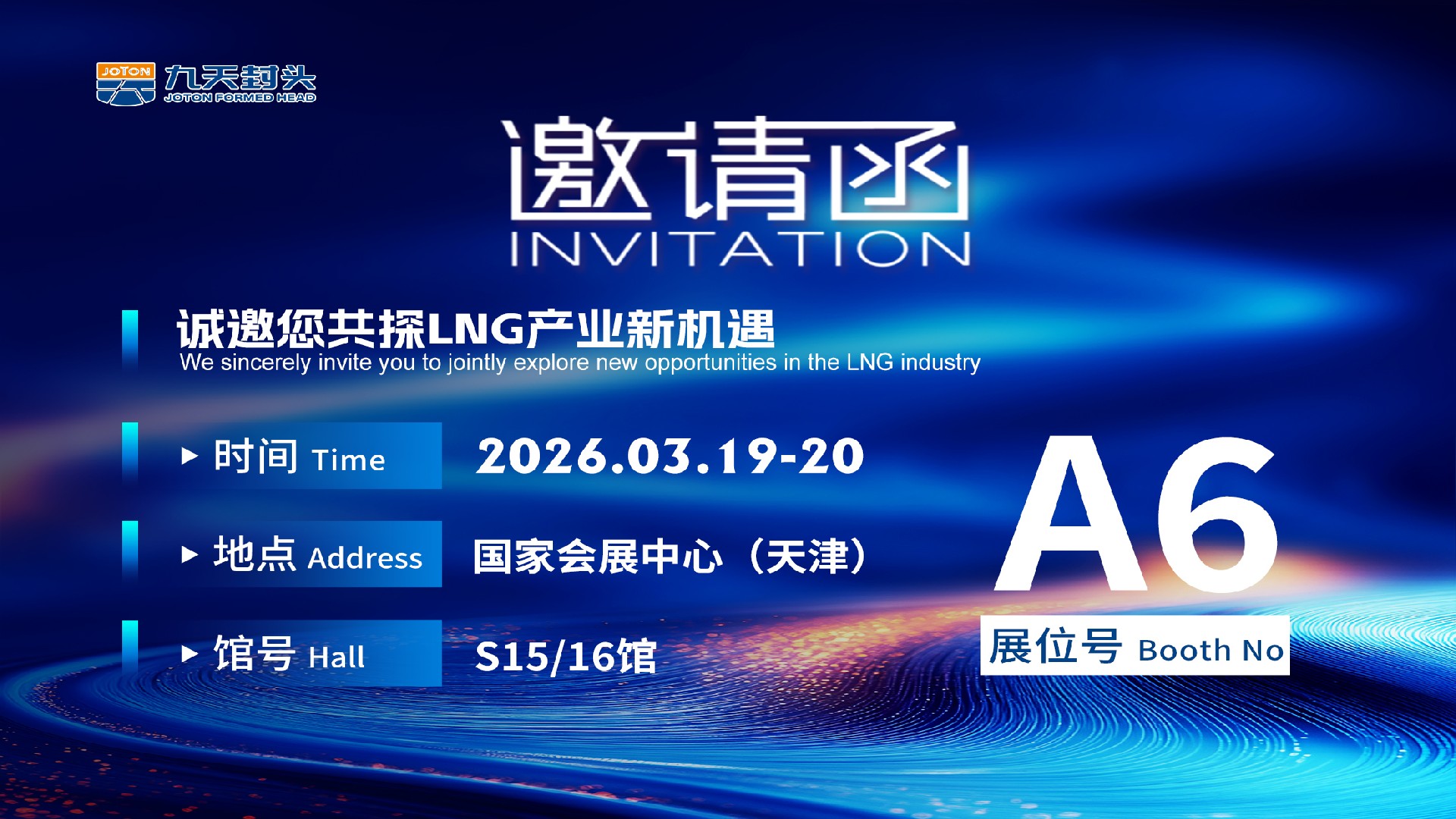 春风启序,智汇津门,河南九天封头制造有限公司,即将重磅亮相第六届中国液化天然气大会暨LNG设备与材料技术成果展!作为LNG领域的重要行业盛会,本次大会将于2026年3月19-20日在国家会展中心(天津)一期S15/16馆盛···